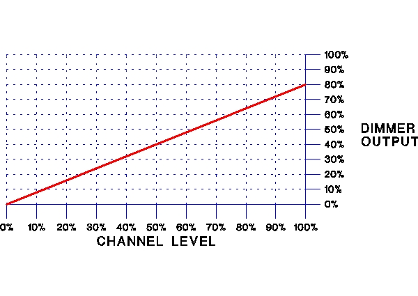 - By default, if the channel level is 30% the dimmer output is also 30%. If the channel level is 80%,